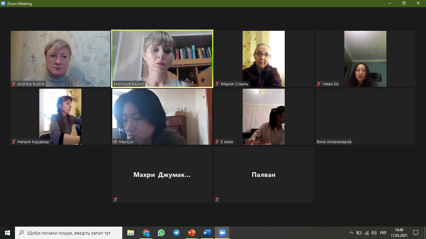 17 березня 2021 року в рамках Тижня доброчесності в Університеті Ушинського кафедрою слов’янського мовознавства було організовано презентацію та проведено круглий стіл «Основні принципи дотримання доброчесності в освітньому процесі Університету Ушинського». До заходу долучилися здобувачі-іноземці першого (бакалаврського) рівня основних курсів та науково-педагогічні працівники кафедри.