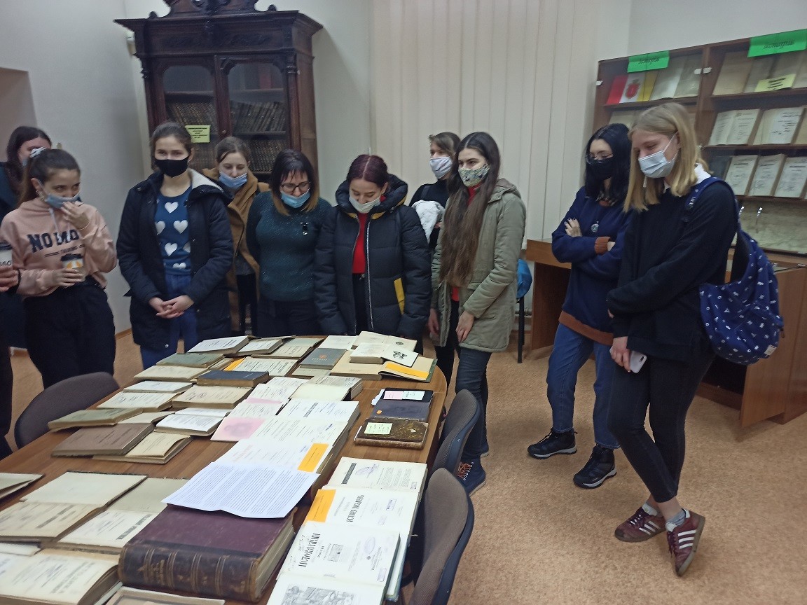 До міжнародного дня числа «Пі» група студентів фізико-математичного факультету 18 березня відвідала виставку стародруків ХІХ-ХХ ст. в Бібліотеці Університету Ушинського. На виставці було представлено видання з математики та методики її навчання з фонду цінної та рідкісної літератури, видання гражданського друку ХVIII ст., книги з історії математики та історії писемності і друкарства ХІХ-ХХ ст., видання з математики на іноземних мовах. Екскурсію-презентацію провела фахівець сектору цінної та рідкісної літератури, бібліотекарка Наталія Любомирівна Гончаренко.