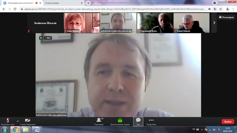 Так, 18 травня 2021 року члени кафедри освітнього менеджменту та публічного управління взяли активну участьу Круглому столі на тему: «Громадянське суспільство і влада – два крила стійкої, незалежної України». Цей захід організовано кафедрою публічного управління та регіоналістики ОРІДУ НАДУ разом із ГО «Одеський інститут соціальних технологій» і Громадською мережею публічного права та адміністрації UPLAN.
