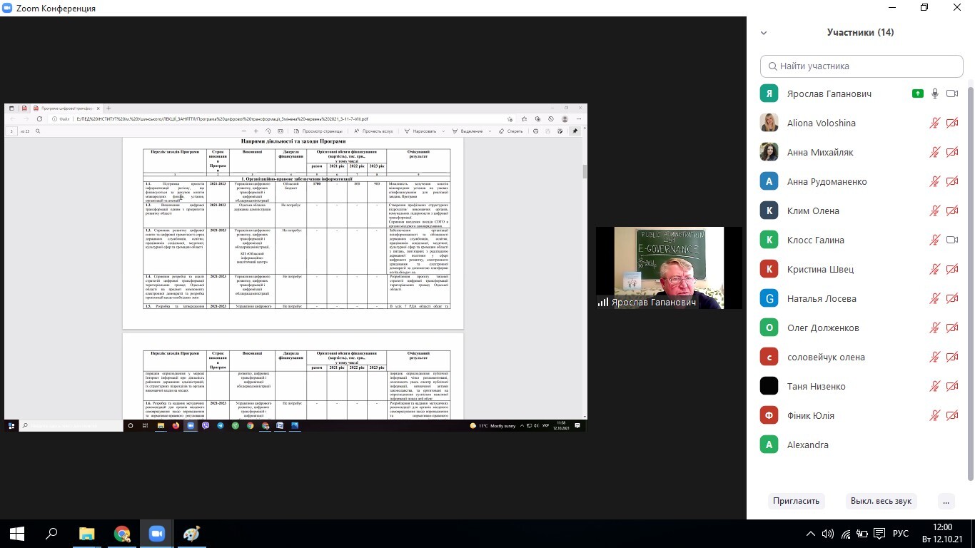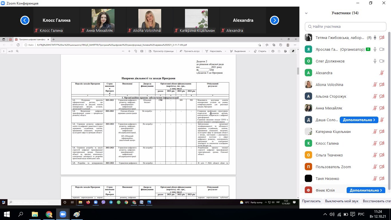 12 жовтня 2021 р. в Університеті Ушинського відбулася відкрита онлайн-лекція на тему «Перспективи цифрової трансформації Одеської області у 2021-2023 роках». Її провів заступник директора комунального підприємства Одеської обласної ради «Обласний інформаційно-аналітичний центр», кандидат наук з державного управління Гапанович Ярослав Валерійович.