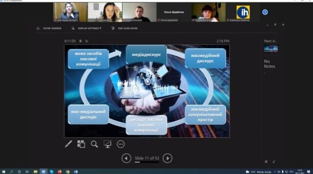 4 листопада 2021 року в Університеті Ушинського для здобувачів ОНП «Філологія» в межах професійної дисципліни «Новітні напрями в мовознавстві ХХ-ХХІ ст.» відбулась гостьова лекція Олександри Романюк, доцента кафедри англійської мови НУ «Одеська морська академія», на тему «Медіадискурс: когнітивно-прагматичний аспект». Олександра Романюк має 8 публікацій у міжнародній наукометричній базі даних Scopus з цієї тематики. Здобувачі ознайомилися з класифікацією медіадискурсу відповідно до медіаканалу реалізації та методологічними засадами дослідження.