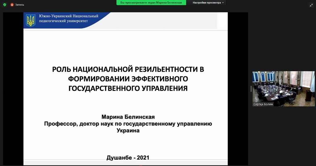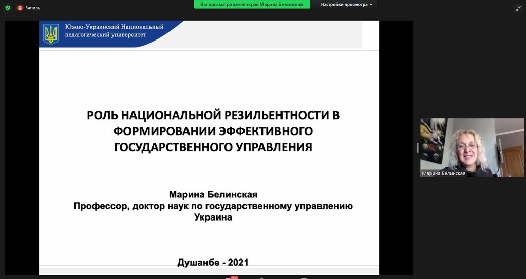 26 листопада 2021 року професор кафедри освітнього менеджменту та публічного управління Університету Ушинського М. М. Білинська взяла участь у міжнародній конференції «Роль сучасних освітніх закладів в інноваційному, соціально-економічному розвитку нового Узбекістану», яка проходила в Ташкентському державному економічному університеті (Республіка Узбекістан) з доповіддю «Роль національної резільєнтності у формуванні ефективного державного управління». Доповідь викликала зацікавленість присутніх, за результатами виступу відбулося обговорення основних питань державного управління в сучасних умовах. Було обговорено також шляхи подальшої академічної співпраці між закладами вищої освіти обох країн.