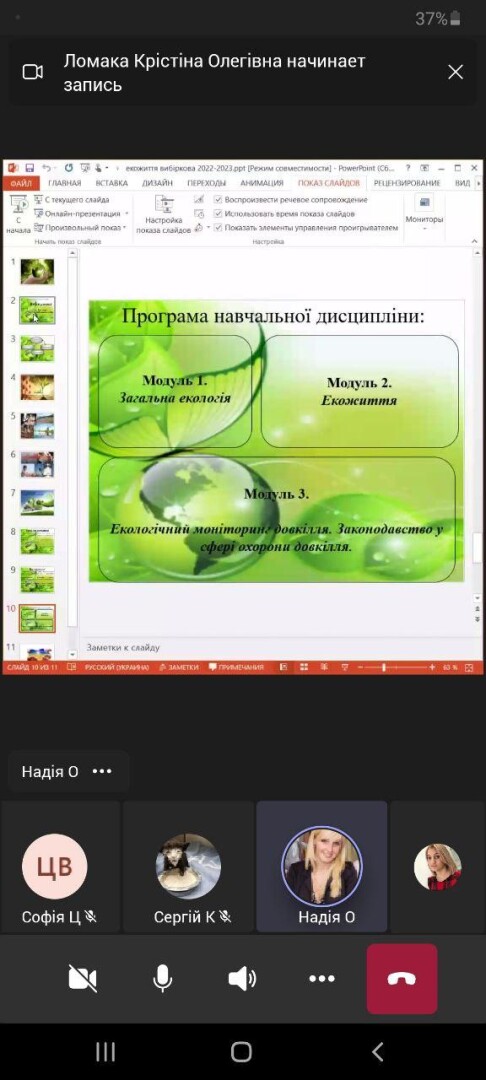 Запропоновано дві актуальні дисципліни: Екожиття (Орлик Надія Анатоліївна, кандидат біологічних наук, старший викладач), Основи невідкладної долікарської допомоги (Топчій Марія Сергіївна, кандидат біологічних наук, завідувач кафедри). По закінчені доповіді було задано багато запитань, на які із задоволенням надавалися відповіді.