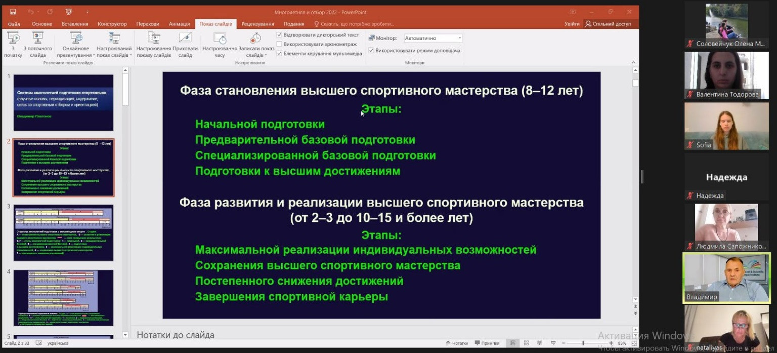 9 жовтня 2022 року для аспірантів Університету Ушинського спеціальності 017 Фізична культура і спорт в межах вивчення дисципліни «Система підготовки спортсменів у сучасному спорті вищих досягнень» провів гостьову лекцію на тему «Теоретичні та прикладні аспекти системи підготовки висококваліфікованих спортсменів» видатний український вчений у сфері спортивної науки Володимир Миколайович Платонов.
