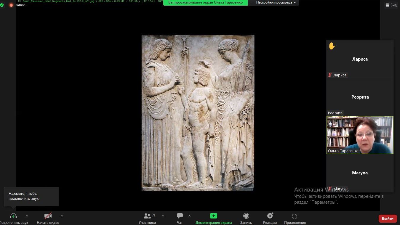 Презентація твору Тараса Шевченка була побудована на принципі дослідження у широкому часовому та культурному діапазоні світового мистецтва засобами компаративного методу, як провідного для наукової школи О.А. Тарасенко.