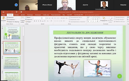 10 березня 2023 року відбулось розширене засідання кафедри гімнастики та спортивних єдиноборств, присвячене апробації результатів досліджень здобувача третього (освітньо-наукового) рівня вищої освіти спеціальності 017 Фізична культура і спорт Гулякіна Сергія (науковий керівник – доктор наук з фізичного виховання і спорту, професор кафедри гімнастики та спортивних єдиноборств Валентина Тодорова). Матеріали дисертації за темою «Спеціальна фізична підготовка фігуристів до змагань на етапі спеціалізованої базової підготовки у підготовчому періоді» опубліковано у фахових наукових виданнях України, які є авторитетами у науковому світі та представлені на численних конференціях.