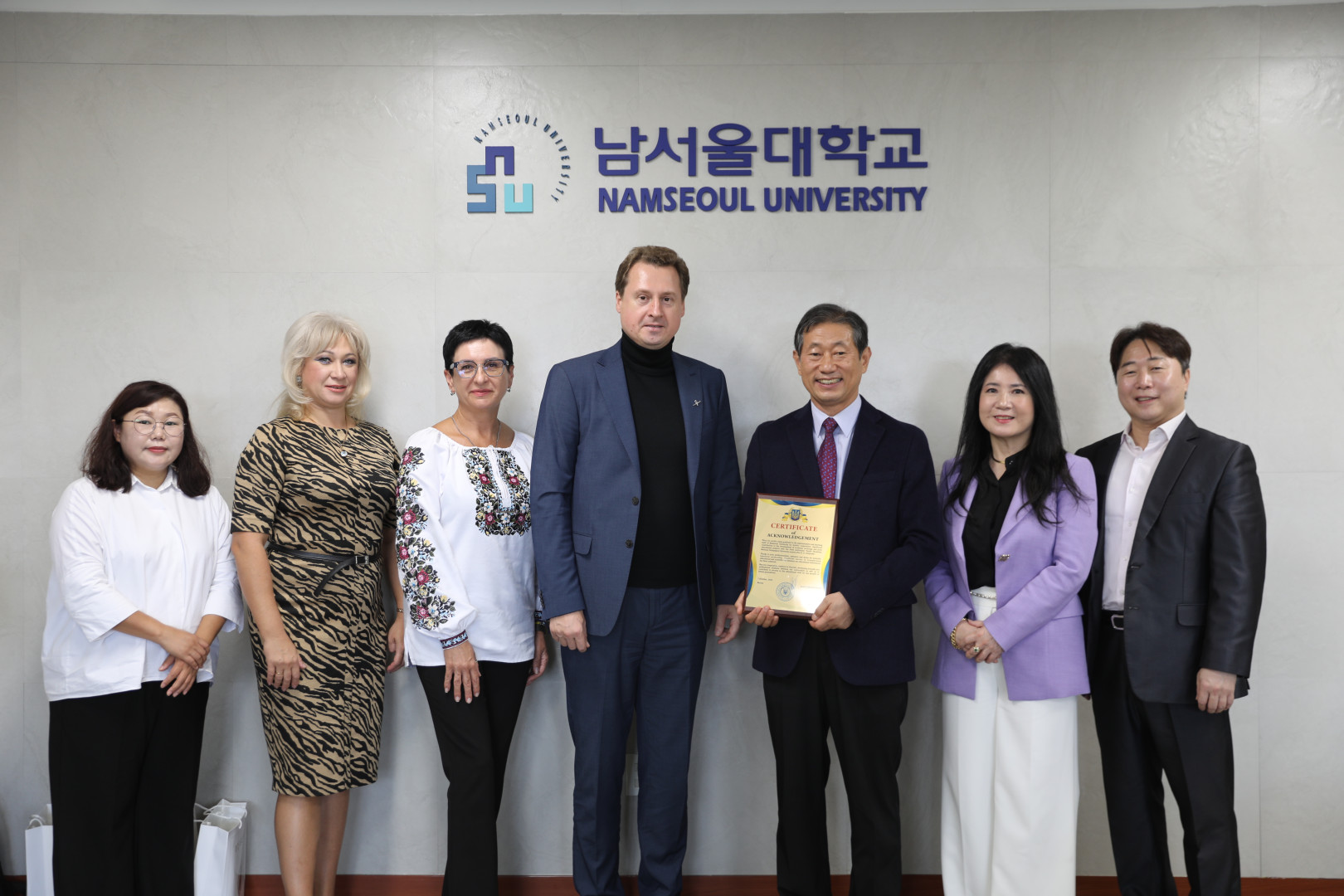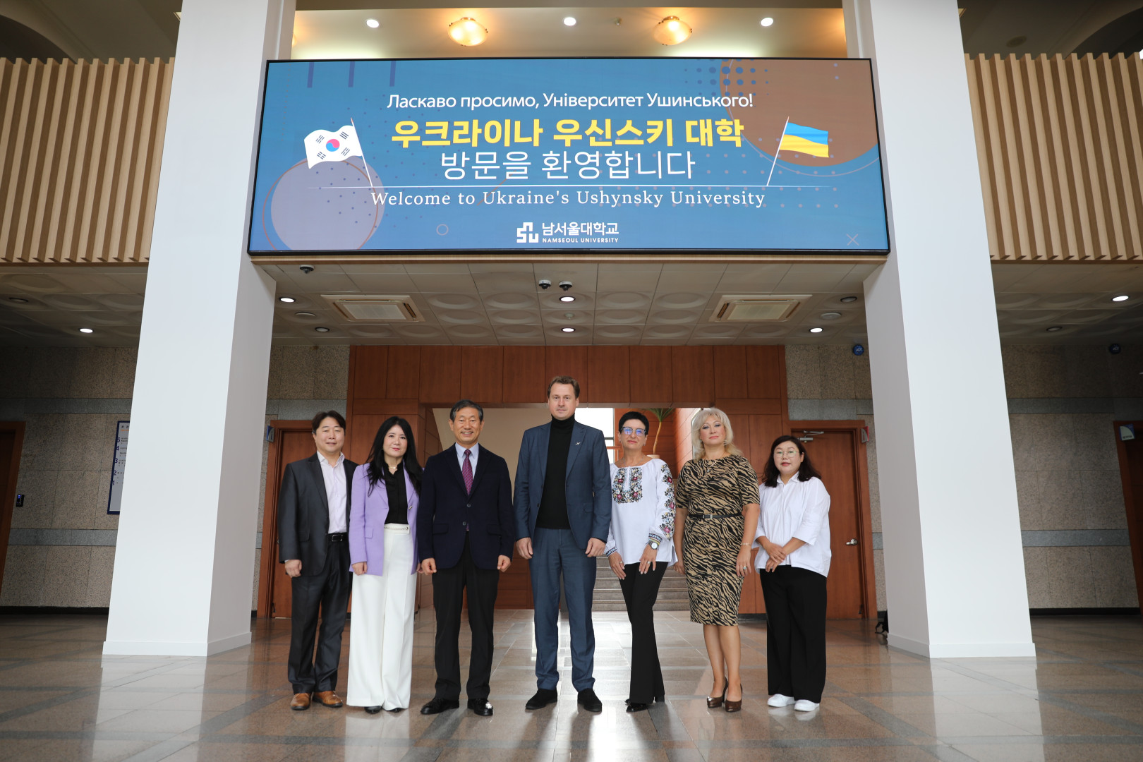 16 жовтня 2024 року делегація Університету Ушинського у складі ректора Андрія КРАСНОЖОНА, першого проректора з навчальної та науково- педагогічної роботи Ольги КОПУСЬ, декана факультету іноземних мов Олександри ПОПОВОЇ та координатора Освітнього науково-інформаційного та культурного центру Республіки Корея Антоніни ПАК відвідала Університет Намсеул з метою спільного створення міжнародної платформи для обміну ідеями, дослідженнями, взаємного збагачення та зміцнення зв’язків між університетами Намсеул та Університетом Ушинського. Ректор Університету Намсеул пан ЮН Сангйоенг висловив свою повагу українським колегам за патріотичну позицію та продуктивність реалізації освітнього процесу в складні для України часи. Координатор міжнародної діяльності європейських вишів пані ШIН Чжонхі повідомила про умови навчання та проживання студентів Університету Ушинського на кампусі корейського університету та провела екскурсію університетом. Декан відділення міжнародних справ та зовнішньої співпраці Університету Намсеул пан ЛІ Сангбінь запропоновав переглянути вимоги та можливості покращення програм академічної мобільності для студентів Університету Ушинського.