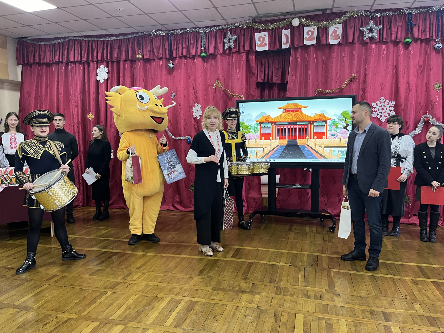 Поздоровляли учнів других класів, які тільки почали свій шлях у вивченні китайської мови. Незважаючи на те, що китайська є одною з найскладніших мов у світі, учні вже опанували основи ієрогліфіки. Отримали винагороду й знавці китайської третіх та четвертих класів, які вже мають у своєму багажі не тільки основи китайської мови, а й можуть стати провідниками у світ китайської філософії, оскільки цієї осені учні взяли участь у святі «День Конфуція» та ознайомились з його вченням.