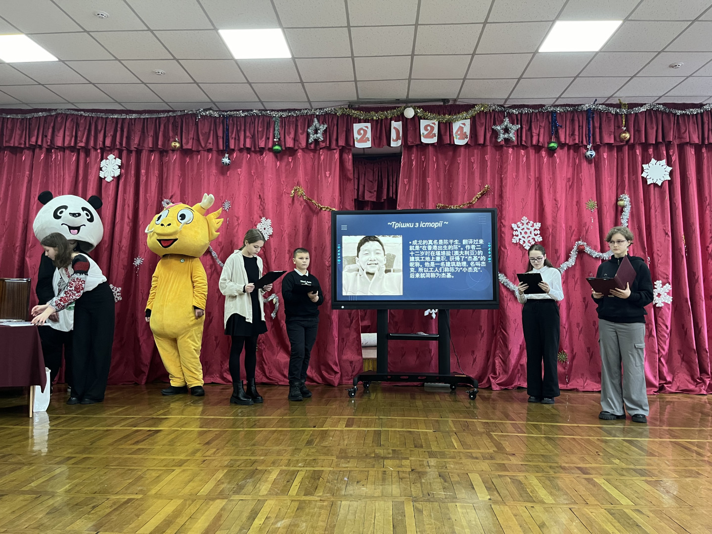 Свій вклад у це свято внесли й учні 8-х класів, які поділились набутими знаннями китайської поезії, розповіли про одну з найвидатніших письменниць сучасності – Шу Тін. Михайло Поліщук презентував життєвий шлях та історичний внесок імператора Цинь Шихуанді.
