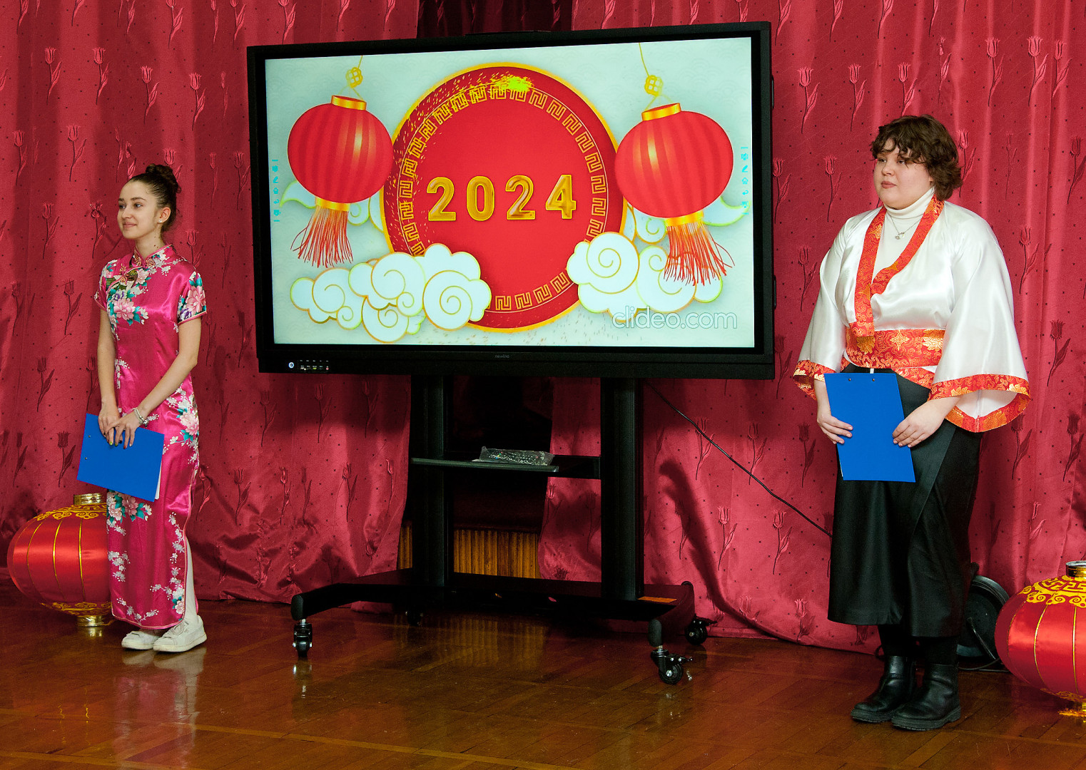 У цьому році слухачі китайської мови Класу Конфуція підготували яскраві виступи та занурились у подорож до світу культури і традицій Китаю. Учні 5-Г класу продемонстрували пісню «Гонг Сі», учні 8-А класу розказали та презентували, якими легендами поросло це свято Нового року в Китаї, презентували вірші Лі Бо та яскраві події його біографії. Після концерту учням було запропоновано майстер-класи, а саме: каліграфія, чаювання та розпис пряників, вирізання, плетіння, профорієнтація.