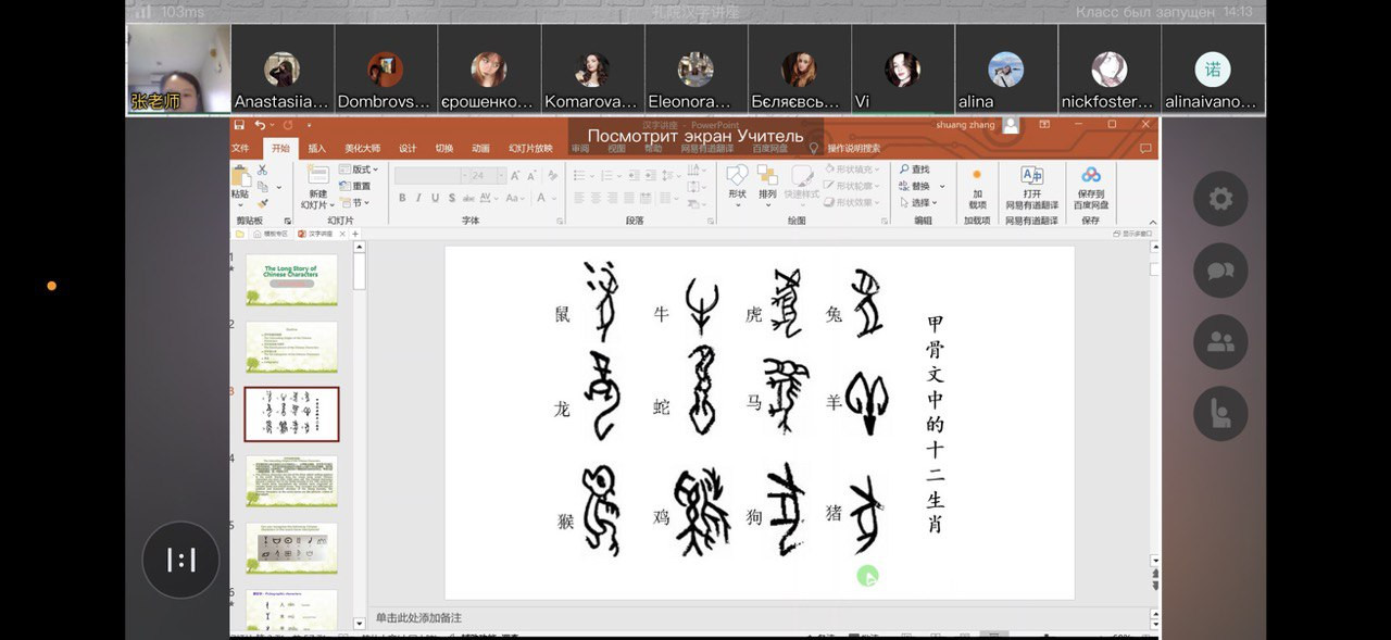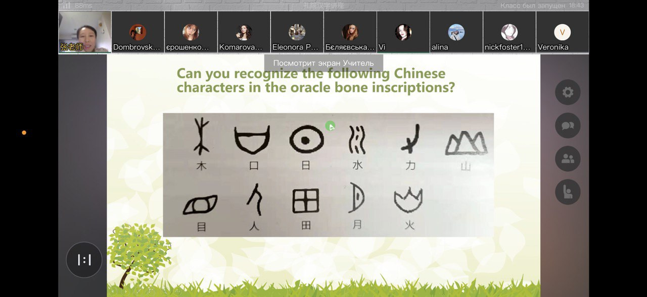 Пані Чжан репрезентувала захопливу розповідь про еволюцію китайського письма: від найдавніших написів на кістках для ворожіння і бронзі до сучасної спрощеної системи. Лекція охопила не лише історичні аспекти, але й культурне значення ієрогліфів у житті китайського народу, їхню роль у формуванні національної ідентичності та міжкультурного спілкування.