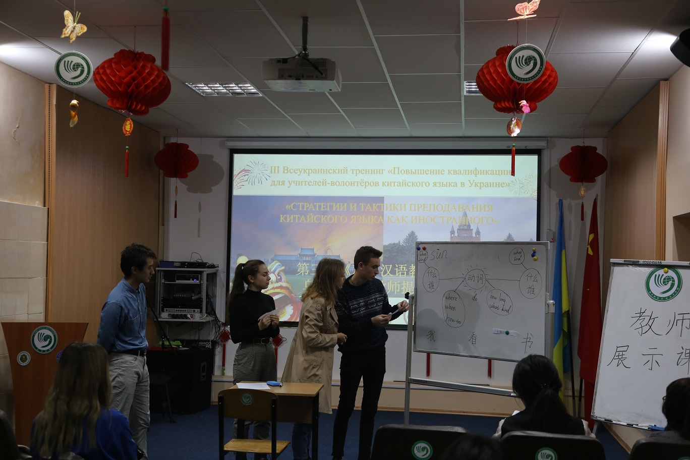 Під час тренінгів викладачам-волонтерам було презентовано: нові напрями викладання китайської мови у початковій і середній школі; особливості навчання українців усіх видів мовленнєвої діяльності (аудіювання, говоріння, читання, письмо); технології викладання фонетики, граматики, лексики; методичні аспекти підготовки українських школярів / студентів до складання іспитів YCT / HSK(K); специфіку українсько-китайської крос-культурної комунікації; способи подолання життєвих і психологічних труднощів під час роботи в системі освіти; запровадження сучасних методик навчання китайської мови, а також шляхи професійного вдосконалення викладачів тощо. По завершенню роботи учасники обмінялись досвідом, продемонстрували навички викладання китайської мови як іноземної, обговорили основні труднощі навчання та виявили способи їх подолання.