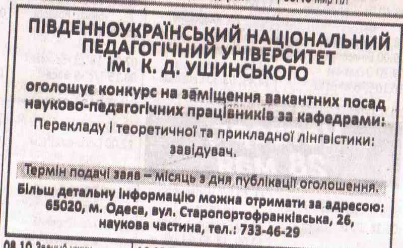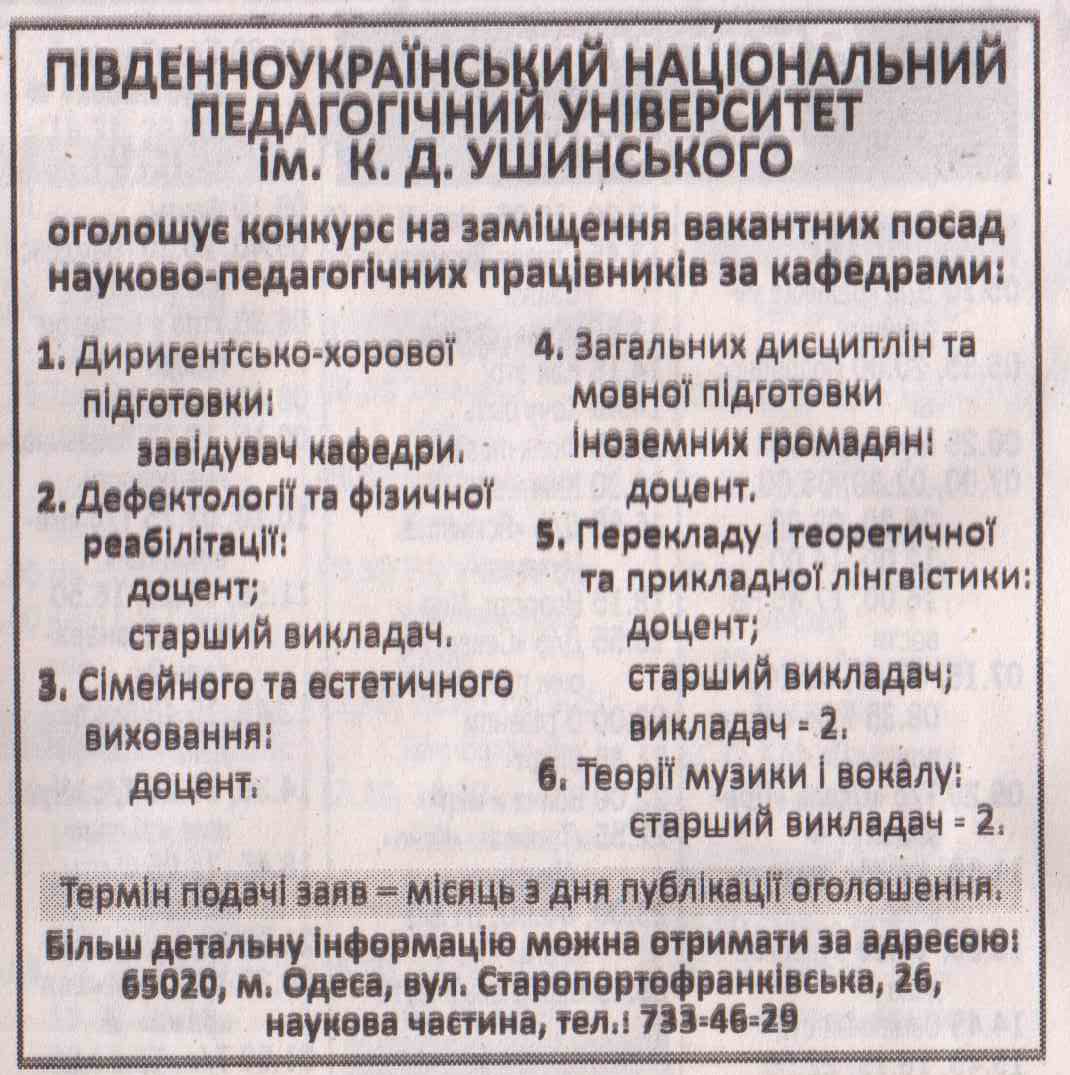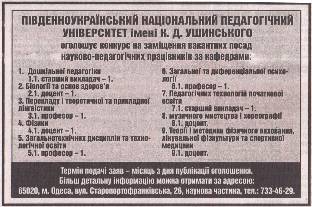 ПІВДЕННОУКРАЇНСЬКИЙ НАЦІОНАЛЬНИЙ ПЕДАГОГІЧНИЙ УНІВЕРСИТЕТ імені К. Д. УШИНСЬКОГО