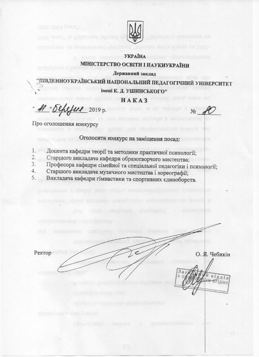 Конкурс на заміщення вакантних посад. Наказ №80 від 11 березня 2019 року.