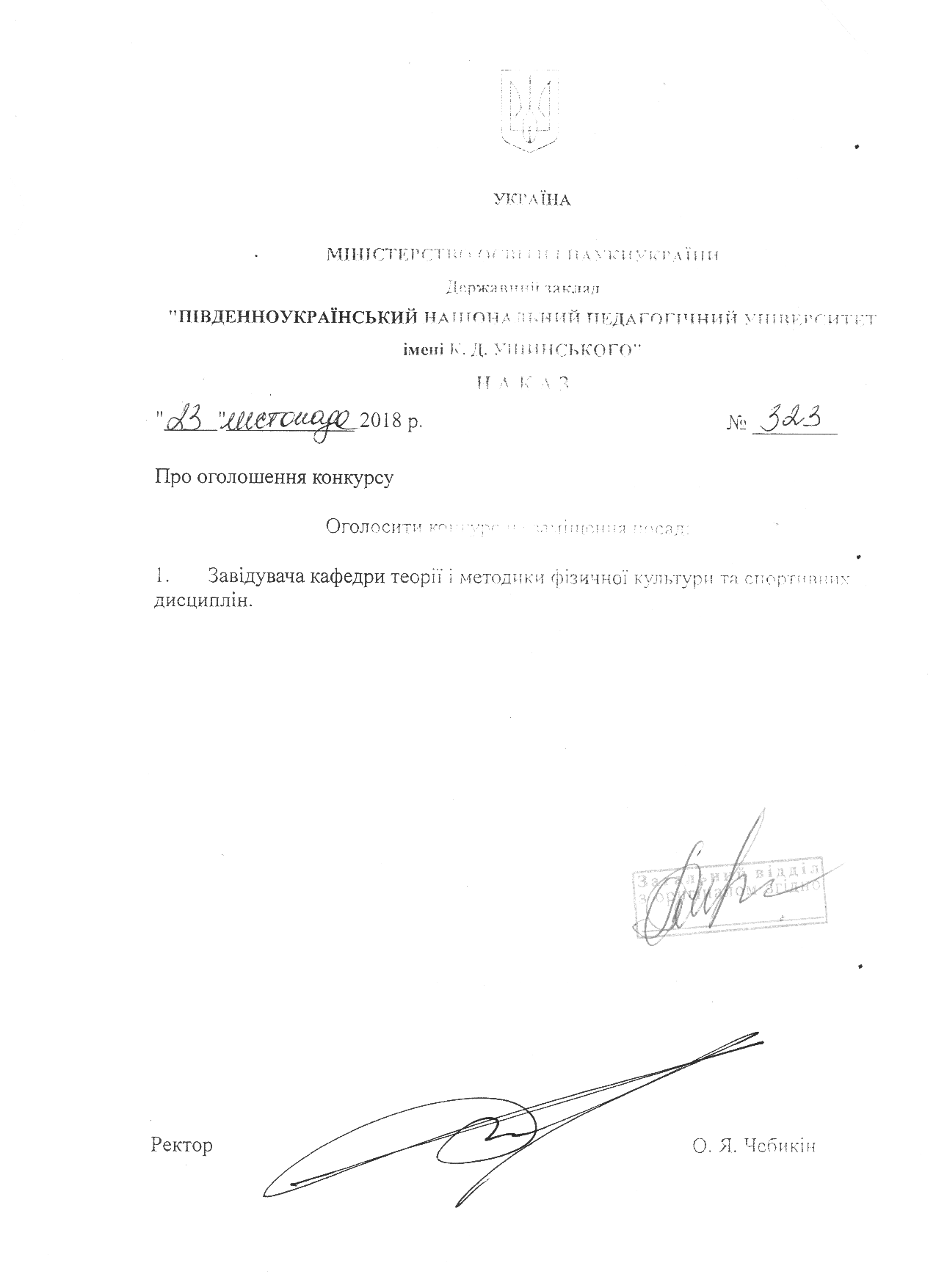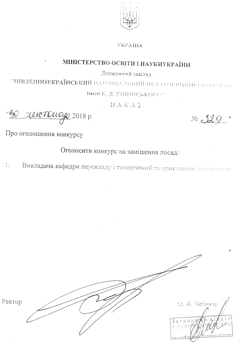 Конкурс на заміщення вакантних посад. Наказ №329 від 30 листопада 2018 року.