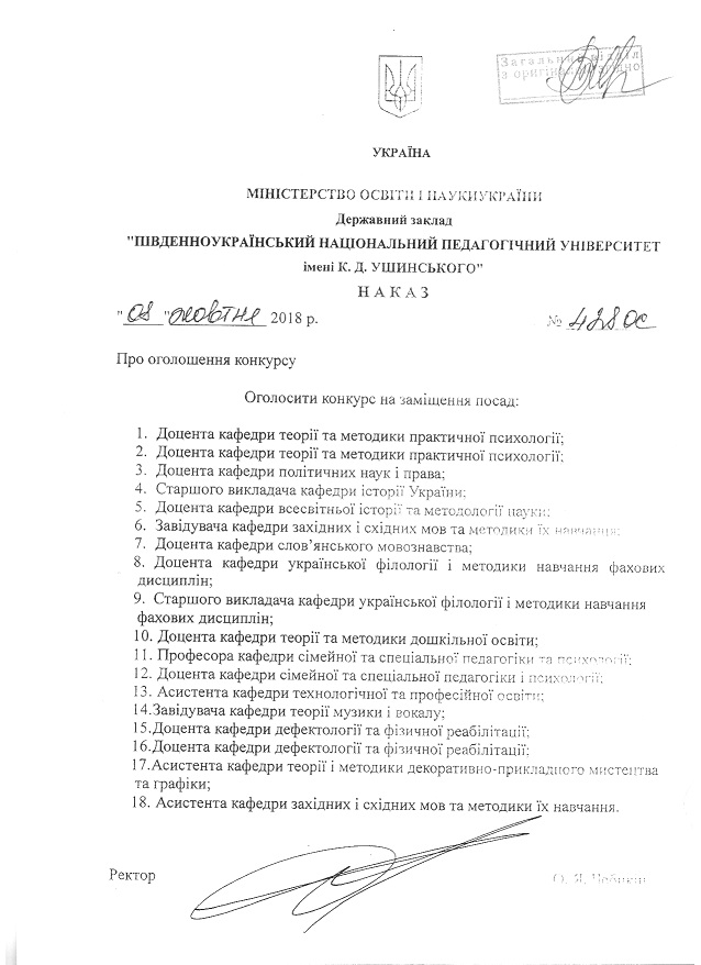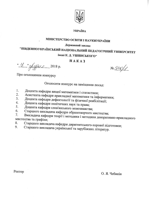 Конкурс на заміщення вакантних посад. Наказ №331-ОС від 17 вересня 2018 року. (2)
