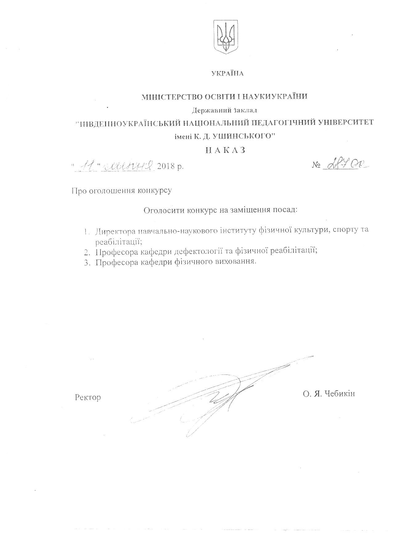 Конкурс на заміщення вакантних посад. Наказ №287-ОС від 11 липня 2018 року.