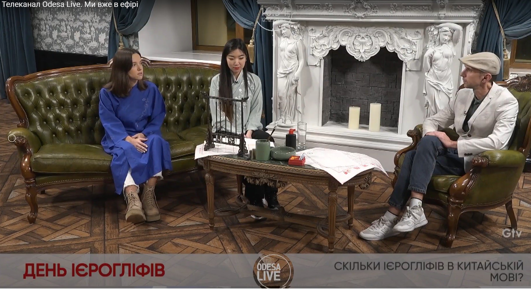 2020年12月12日,乌克兰南方师范大学孔子学院志愿者教师许耀丹与孔院学生雅娜(Мединська Яна)受当地节目《Odesa.Live》邀请,向当地电视观众介绍生动奥妙的汉字知识。