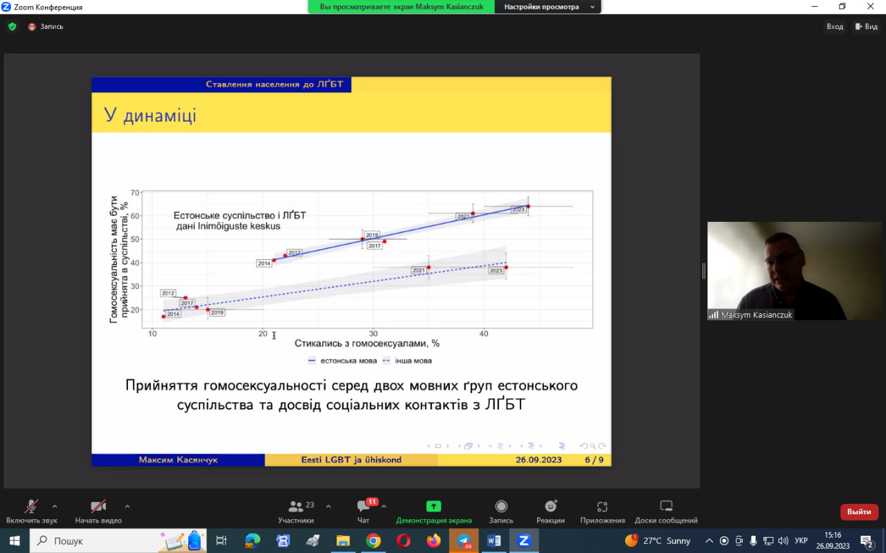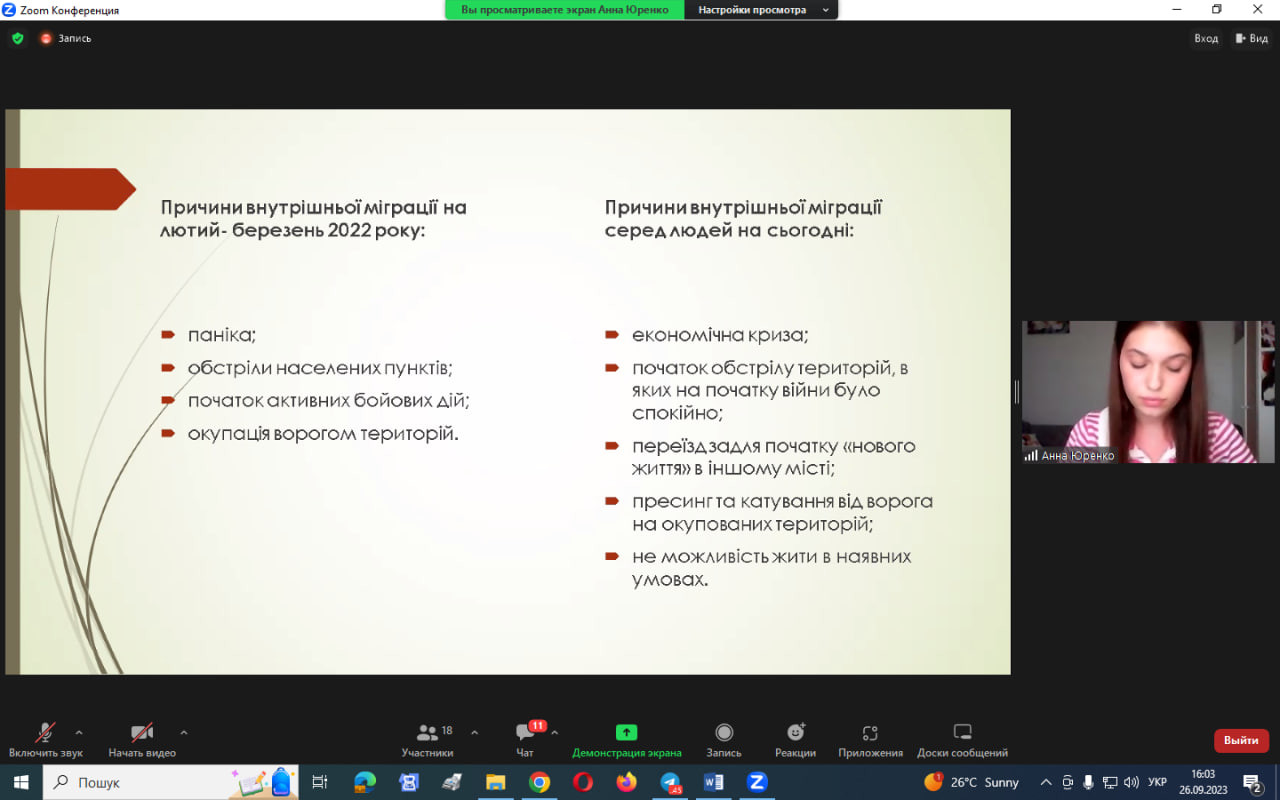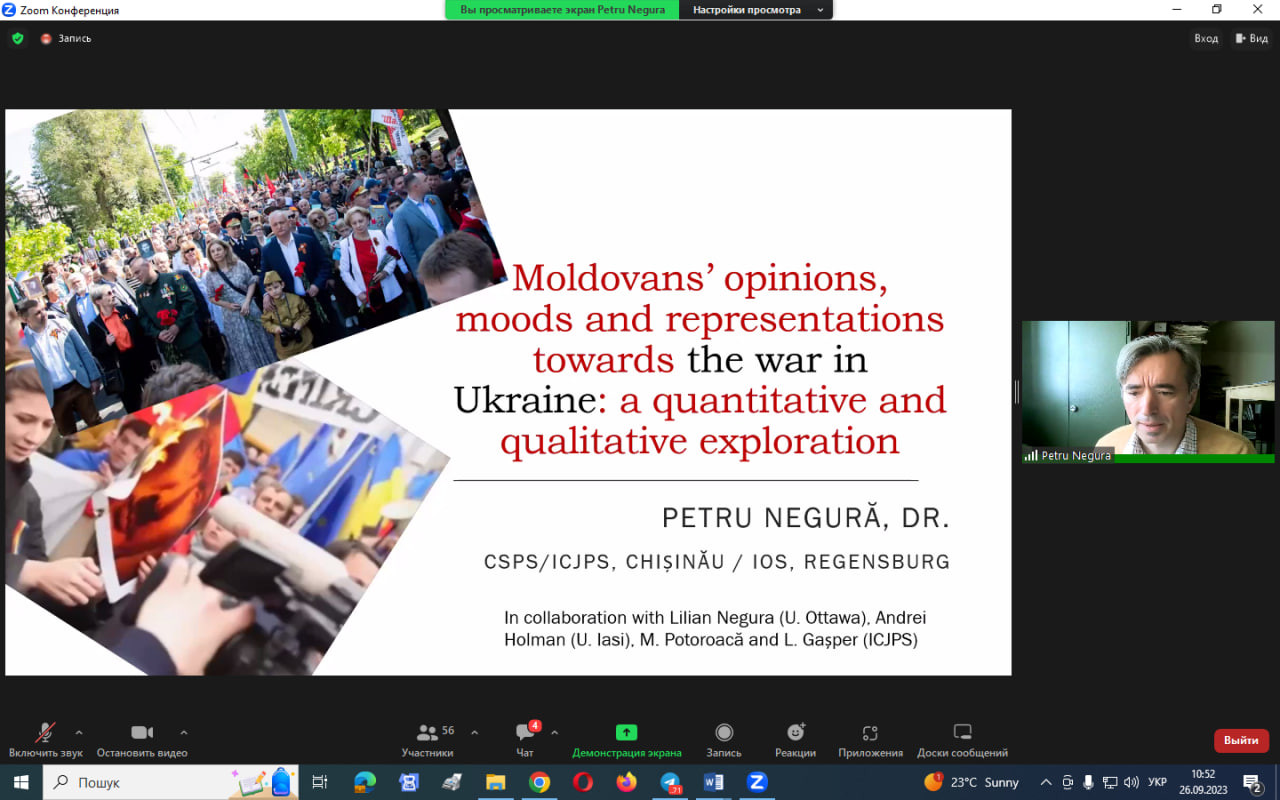 As part of the implementation of the International Scientific Project "Cross-Border Cooperation of the Countries of Central-Eastern Europe" (leader - Prof. Olena Lyseenko), on September 26, 2023, the next International Scientific and Practical Conference "The Phenomenon of Social Consolidation in Central-Eastern Europe: New Realities and challenges", which is organized by the Department of Philosophy, Sociology and Management of Sociocultural Activities of Ushynsky University, the Southern Ukrainian Branch of the Sociological Association of Ukraine, the Association of Sociologists and Demographers of Moldova. Scientists from the Institute of Sociology of the National Academy of Sciences of Ukraine, the Institute of Legal, Political and Sociological Sciences of the Republic of Moldova, scientific and pedagogical workers and students of various levels of higher education in Odesa, Kyiv, Kharkiv, Kryvyi Rih, Zaporizhzhia and other cities took part in the event. The plenary session was opened by the Director of the Institute of Sociology of the National Academy of Sciences of Ukraine, Corresponding Member of NASU, Doctor of Philosophy, prof. Yevhenii Holovakha with a report "War and social consolidation in Ukraine: experience of monitoring research".