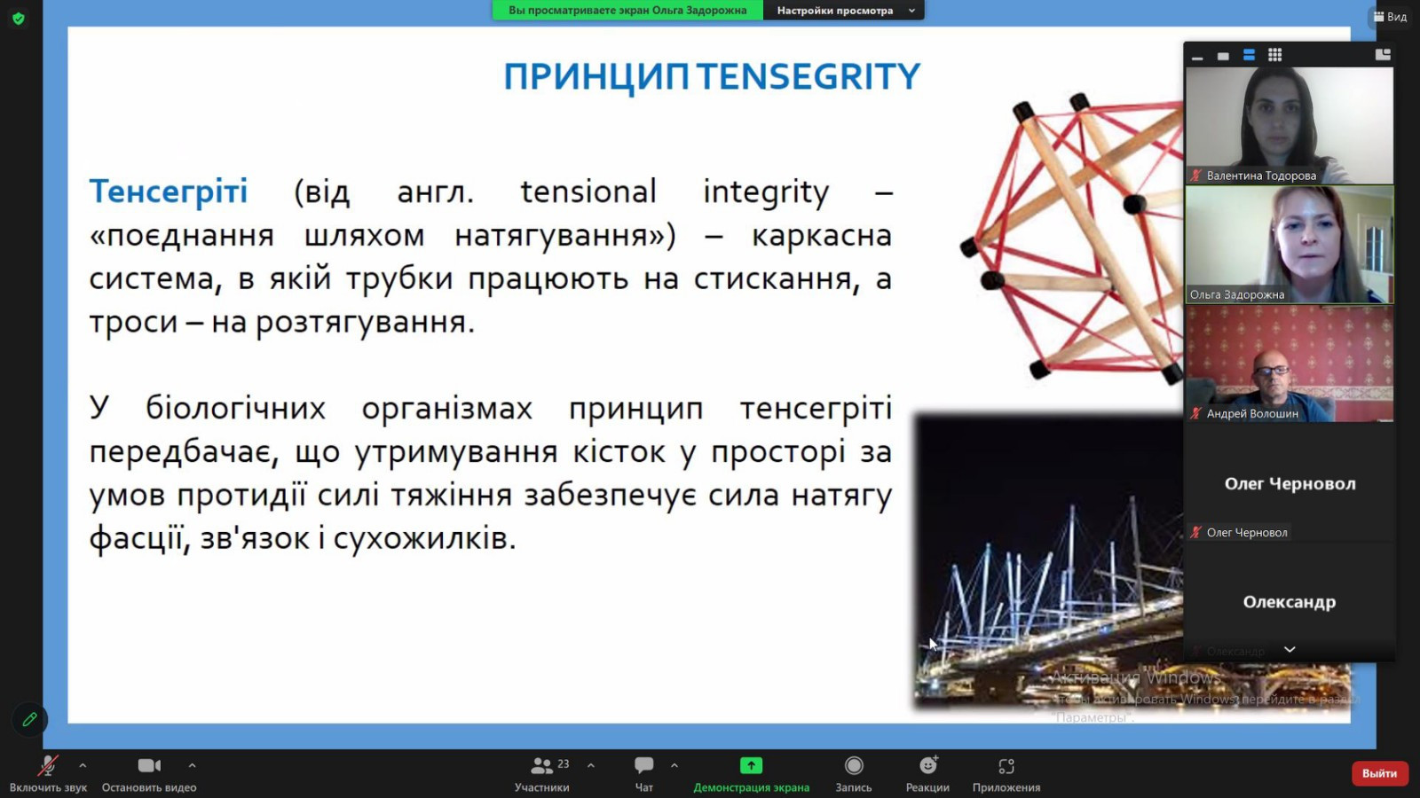 During the seminar, the principle of "tensegrity" was considered. Our entire body is built according to the principle of "tensegrity", and if an imbalance occurs in certain organs or structures, health disorders will be observed.