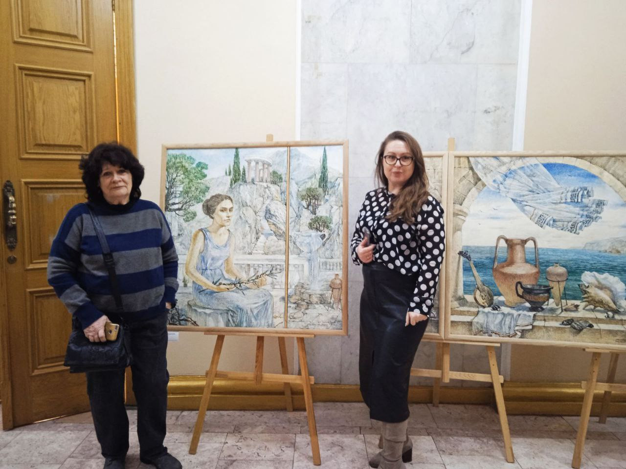 On March 24, 2025, as part of the Greek Culture Week in Odesa, with the assistance of the Department of International Cooperation, Culture and Marketing of the Odesa City Council and in cooperation with the Municipal Art Gallery, an exhibition of creative and diploma works by graduates of the Faculty of Art and Graphics “Under the Sun of Greece” was opened in the Odesa City Council. The opening was attended by the Director of the Department of International Cooperation, Culture and Marketing of the Odesa City Council, Ivan LIPTUGA, and the Head of the Culture Department, Lyudmyla KRYZHALKO.