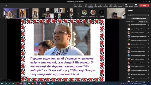 Before Vyshyvanka Day, a patriotic-educational event was held on the Teams platform for students of the first (bachelor's) level of 1-4 courses. Vyshyvanka Day is a relatively new national holiday, but nowadays this holiday is gaining even greater significance.