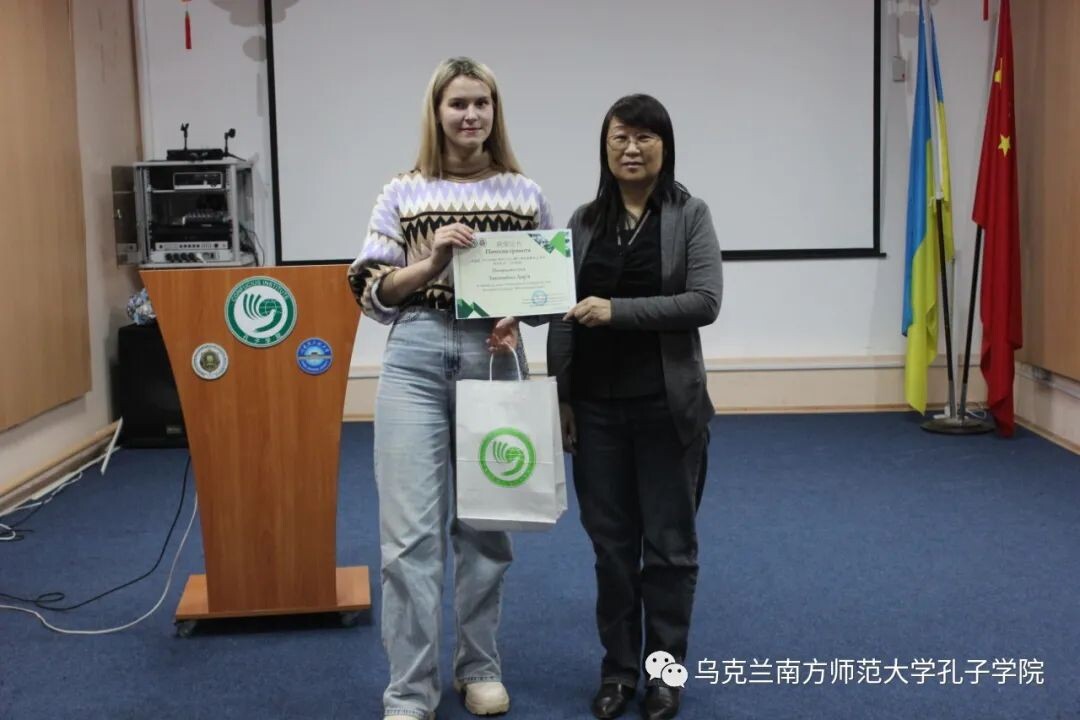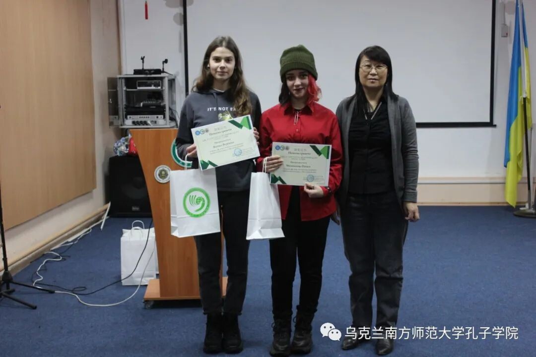 2021年12月24日,第二十一届“汉语桥”世界大学生中文比赛乌克兰敖德萨地区预选赛颁奖仪式在南师大孔院本部举行,乌克兰南方师范大学孔子学院中方院长宗成菊女士出席并为获奖选手颁奖。