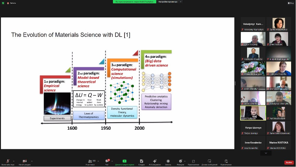 У пленарній частині конференції з доповіддю про вплив ШІ на наукову сферу виступив аспірант спеціальності 105 Прикладна фізика та наноматеріали Андрій ТУЖИКОВ, який є не тільки дослідником впливу Ші на сферу матеріалознавства, а й фахівцем в сфері створення ШІ. Зокрема, мова шла про нову еру в матеріалознавстві, яка спричинена появою ШІ. Відтепер дослідження матеріалів можна проводити за допомогою ШІ і для цього потрібен лише потужний комп’ютер і фахівець з ШІ. Науково-дослідна лабораторія тепер у комп’ютері, а дослідження коротші за часом та дешевші за вартістю.