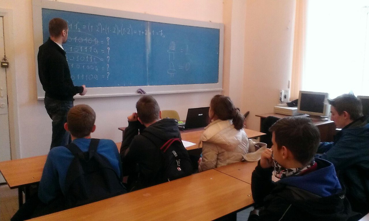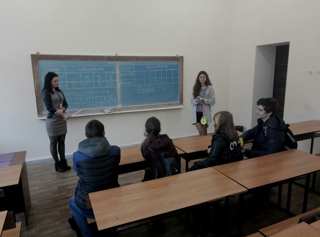 Була організована робота п’яти учнівських команд, які отримували завдання з математики, інформатики й фізики у різних аудиторіях факультету.