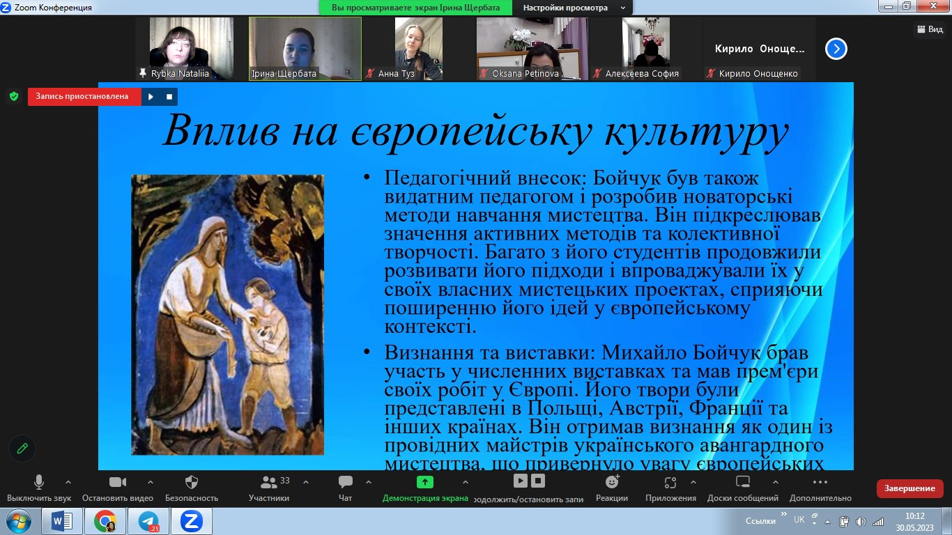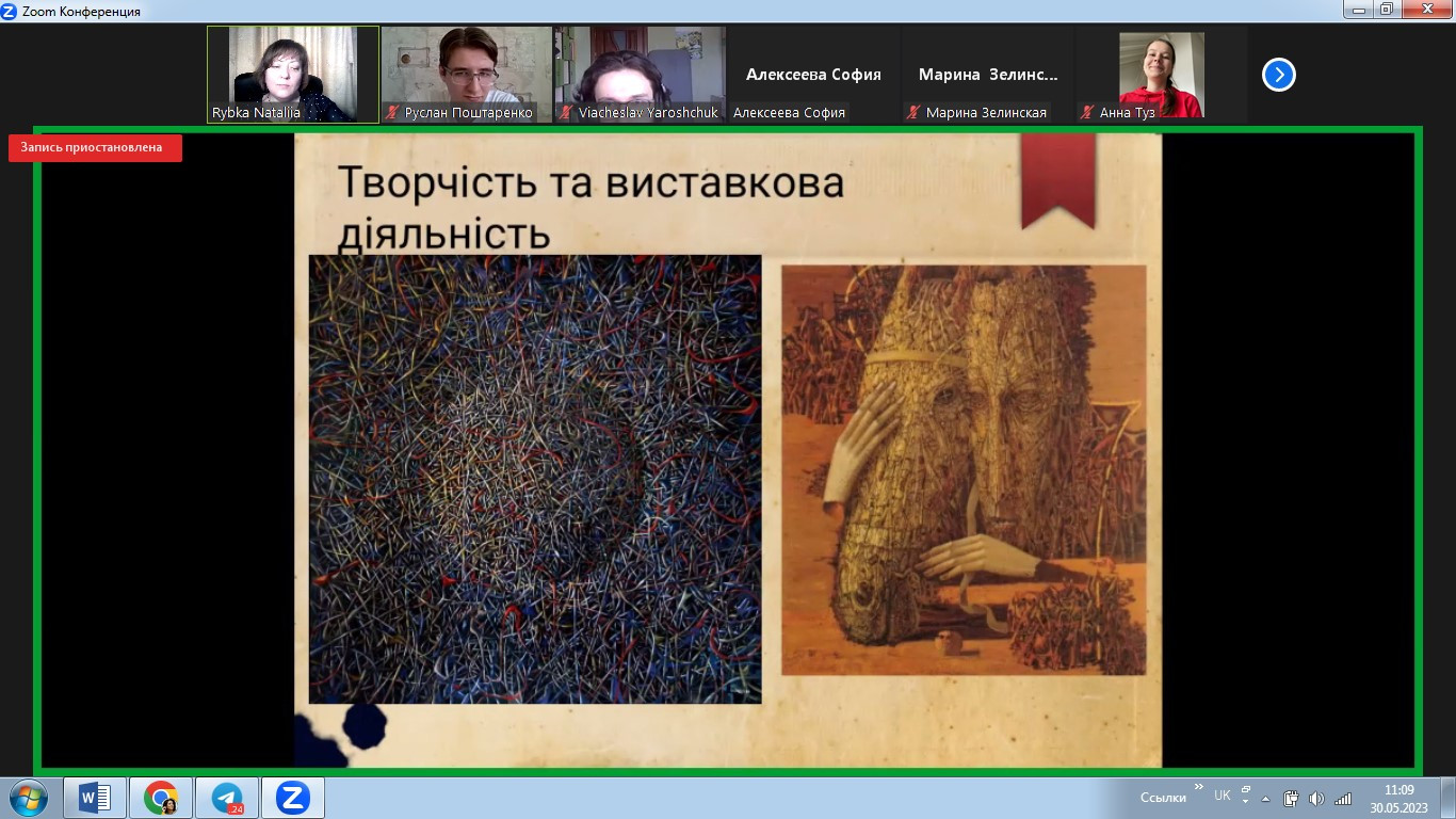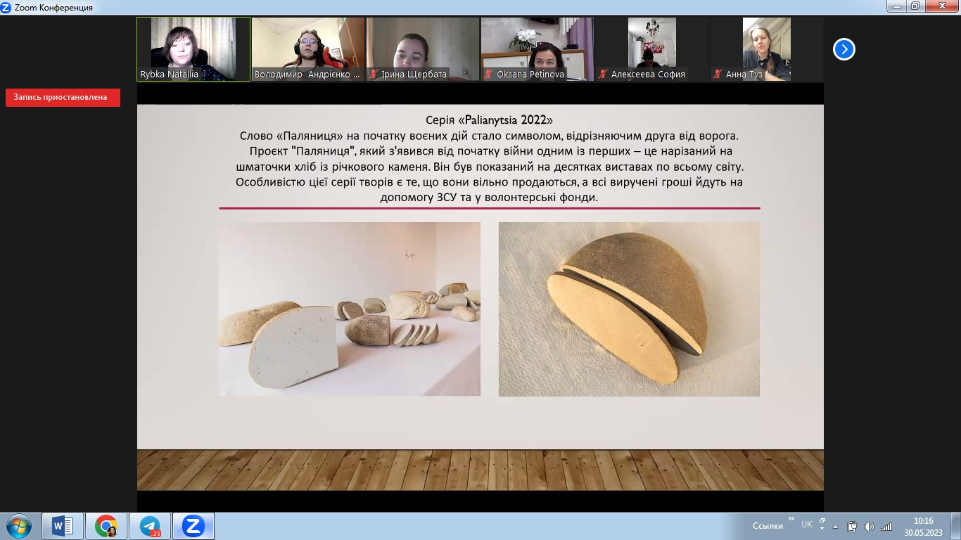 У травні 2023 року в межах реалізації договору про співпрацю між ЗВО-партерами до Дня Європи відбулося спільне засідання студентських наукових гуртків «Південноукраїнські наукові студії» (керівник – проф. Оксана Петінова) та «Філософ» (НУ «Одеська політехніка», керівник – доц. Наталія Рибка). Зустріч була спрямована на обговорення ролі та впливу українців на формування та становлення європейського мистецтва. Студенти підготували та представили на обговорення чудові презентації. Говорили про різні вили мистецтва, в тому числі про літературу, декоративно-ужиткове, сценічне, образотворче мистецтво, музику та архітектуру.