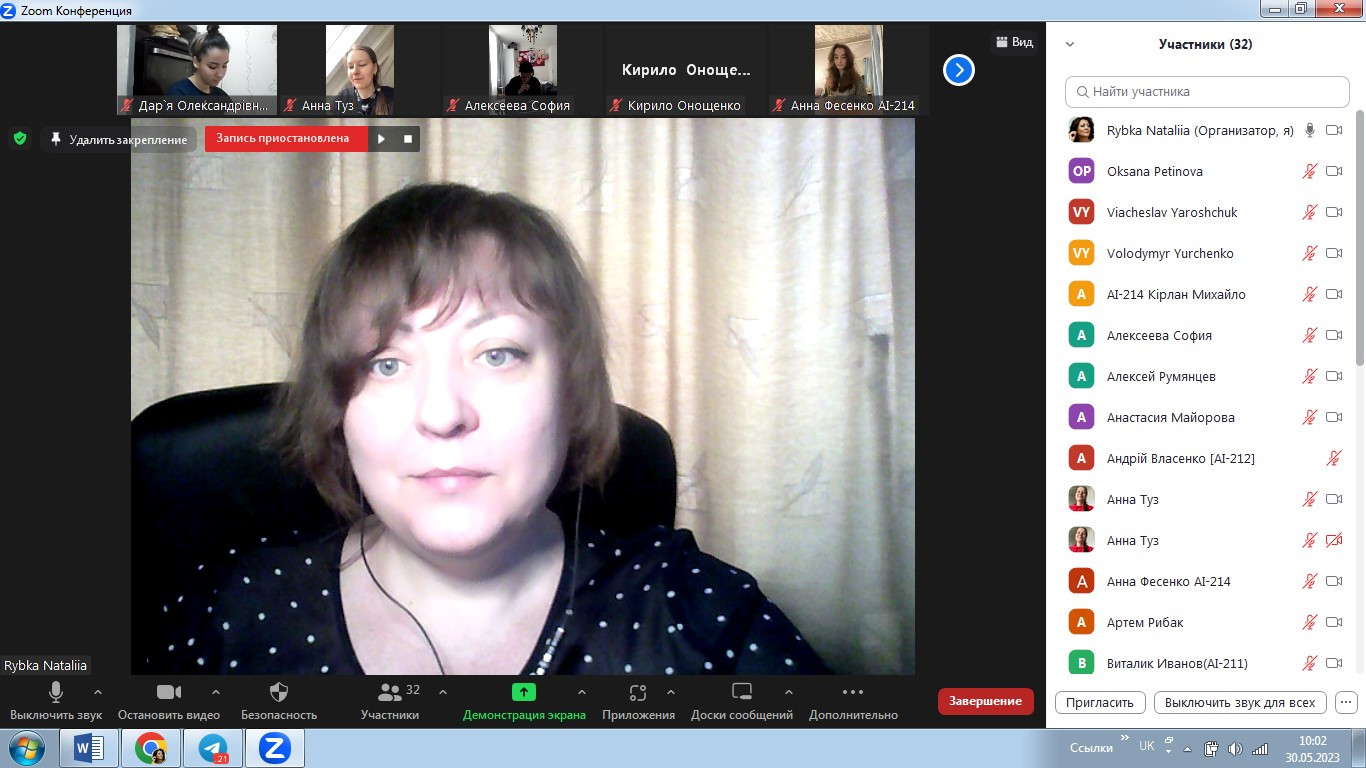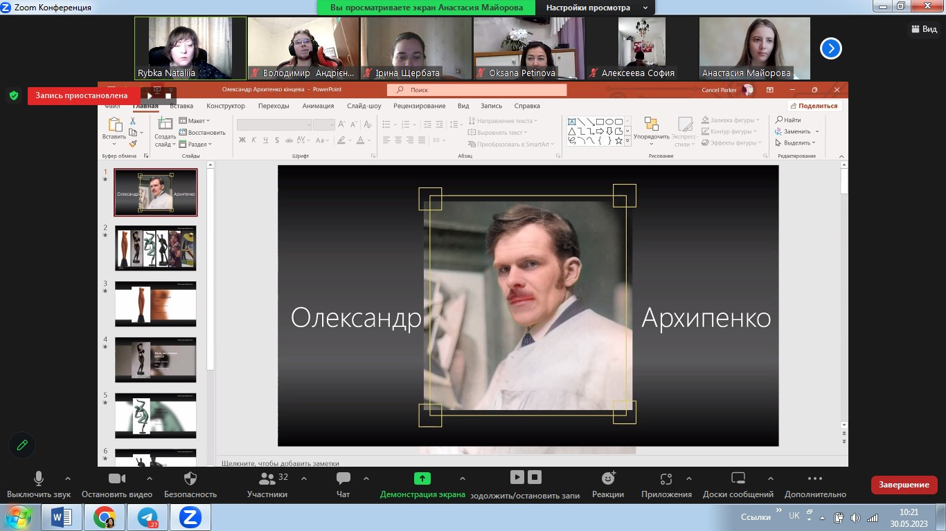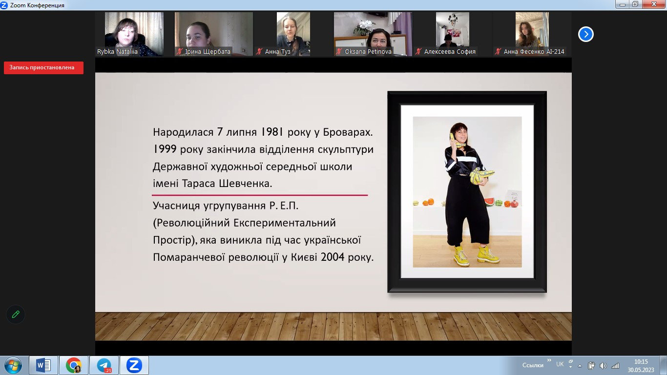 У травні 2023 року в межах реалізації договору про співпрацю між ЗВО-партерами до Дня Європи відбулося спільне засідання студентських наукових гуртків «Південноукраїнські наукові студії» (керівник – проф. Оксана Петінова) та «Філософ» (НУ «Одеська політехніка», керівник – доц. Наталія Рибка). Зустріч була спрямована на обговорення ролі та впливу українців на формування та становлення європейського мистецтва. Студенти підготували та представили на обговорення чудові презентації. Говорили про різні вили мистецтва, в тому числі про літературу, декоративно-ужиткове, сценічне, образотворче мистецтво, музику та архітектуру.