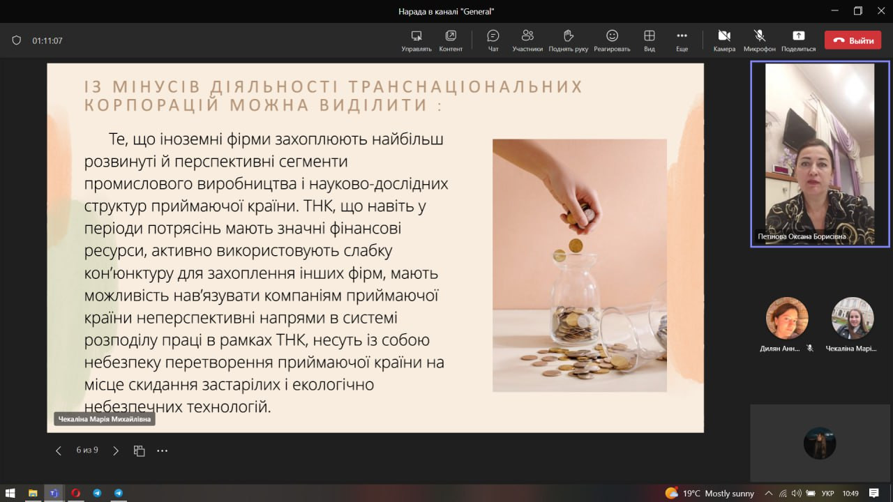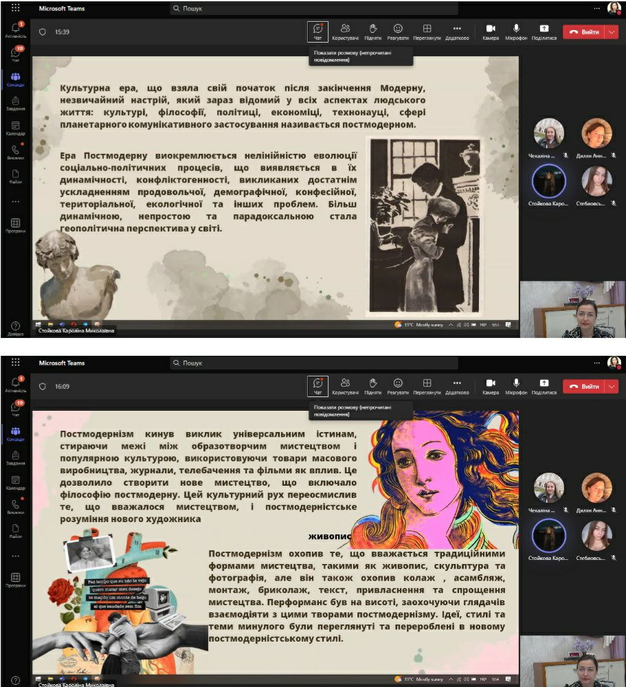 30 червня 2023 року відбулося підсумкове засідання гуртка «Південноукраїнські наукові студії», секція «Менеджмент СКД: теорія, історія та перспективи розвитку в Україні» (керівник – проф. Петінова О. Б.). Обговорювали питання транснаціонального проєктування в інформаційному просторі та особливості презентації мистецтв інформаційної доби. Здобувачі першого (бакалаврського) рівня вищої освіти 2-го року навчання ОПП «Менеджмент соціокультурної діяльності» Марія Чекаліна та Кароліна Стойкова підготували яскраві презентації, всі охоче брали участь у дискусії та обговоренні, наводили власні приклади та висловлювали свою точку зору щодо проблем, які розглядалися.