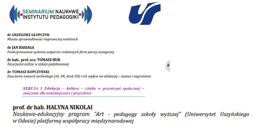На передодні Дня науки програму було презентовано й обговорено на методологічному семінарі «Педагогіка в дослідженнях: сучасні проблеми і виклики», який був проведений 11-12 травня 2023 р. у форматі of-line в місці Устронь (Польща) Інститутом педагогіки Сілезького університету в Катовицях. Презентувала програму гарант – доктор педагогічних наук, професор кафедри музичного мистецтва і хореографії Г.Ю. Ніколаї. В обговоренні програми участь взяли також представники докторської школи Лодзького університету. Програма викликала жвавий інтерес, було звернено увагу науковців на її міждисциплінарний характер, інтеграційний контент, поєднання різних напрямів педагогічної науки, зокрема теорії, історії, компаративістики, методики навчання мистецтву, мистецької педагогіки, а також мистецтвознавства.