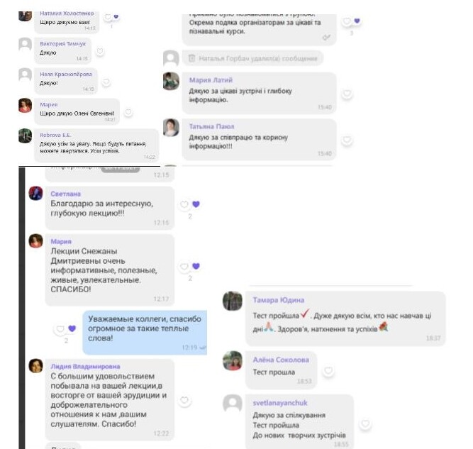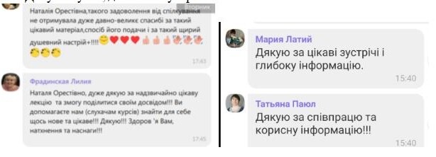Дуже приємно було почути схвальні відгуки слухачів, читати їхні подяки та високу оцінку проведення лекційних та практичних занять кваліфікованими викладачами кафедр.