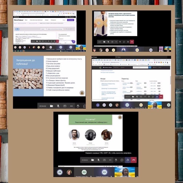 25.05.2022 року відбувся онлайн-семінар «Академічна доброчесність та наукова комунікація викладача в цифрову епоху», спікером якого була кандидат педагогічних наук, доцент кафедри дошкільної педагогіки, директорка бібліотеки Університету Ушинського Валентина Візнюк. Під час онлайн-семінару було розглянути низку питань, а саме: